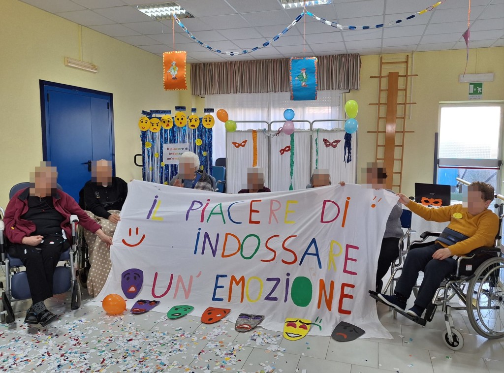 In occasione del Carnevale è stato avviato un progetto di Arteterapia, che sempre più spesso trova uno spazio privilegiato nell’ambito delle terapie non farmacologiche, capaci di stimolare le funzioni cognitive, la creatività, migliorare il tono dell’umore e la capacità di relazionarsi. Attraverso l’uso di materiali e tempere per dipingere, si cerca di sviluppare il potenziale creativo insito in ogni ospite, favorendo l’espressione delle emozioni e rafforzando l’autostima.