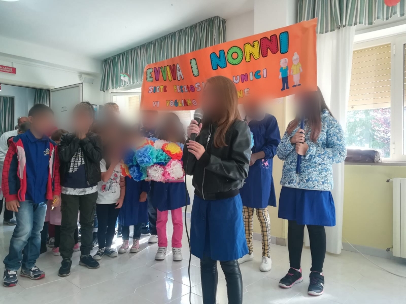 Il momento più intenso si è vissuto con le domande poste dai bambini ai nonni: è stato un bellissimo scambio di emozioni tra due generazioni a confronto, tra l’infanzia pressoché rurale e contadina di settanta/ottanta anni fa, quando per andare a scuola si percorrevano a piedi parecchi chilometri per raggiungere classi di fortuna, adattate in vecchie case e le scuole di oggi, che hanno a disposizione aule con lavagne interattive, computer e dove i bambini vengono accompagnati in macchina dai genitori o con gli autobus forniti dai Comuni.
